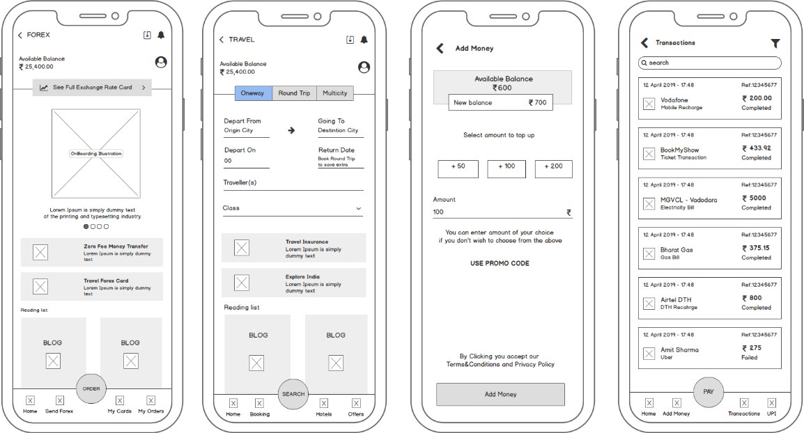 I looked into the competitor’s wallet apps like PhonePe, Paytm, Freecharge, etc I analyzed the key requirements, features, and user flows to fulfill all the requirements. Design flow has to be easy, and the user should not get stuck on the screen.